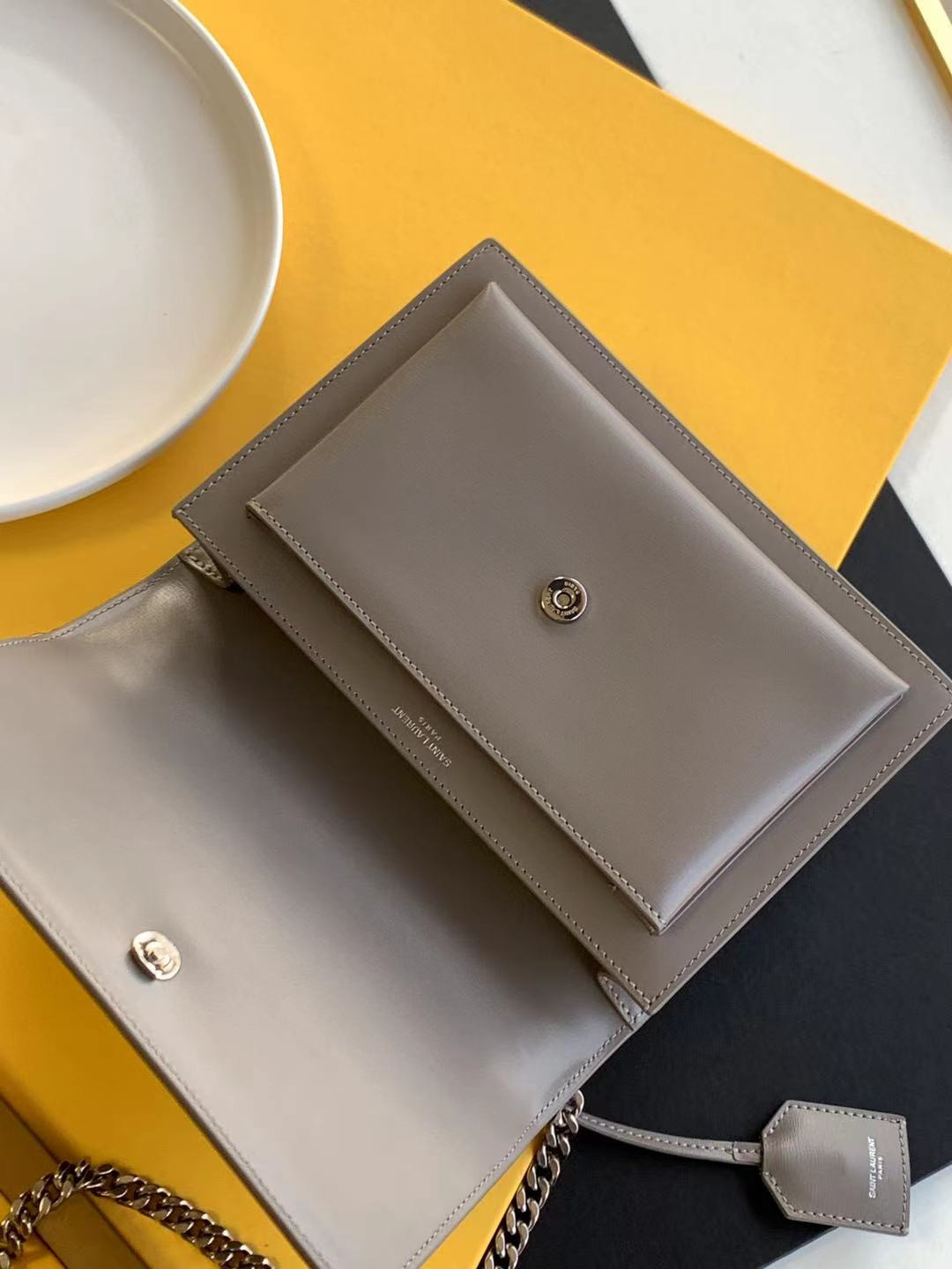 Front flap with magnetic snap closure and signature YSL signature covered in leather. Exterior: 1 rear flat pocket, Interior: 1 main compartment, 1 flat pocket, 1 pocket under the flap, leather lining.