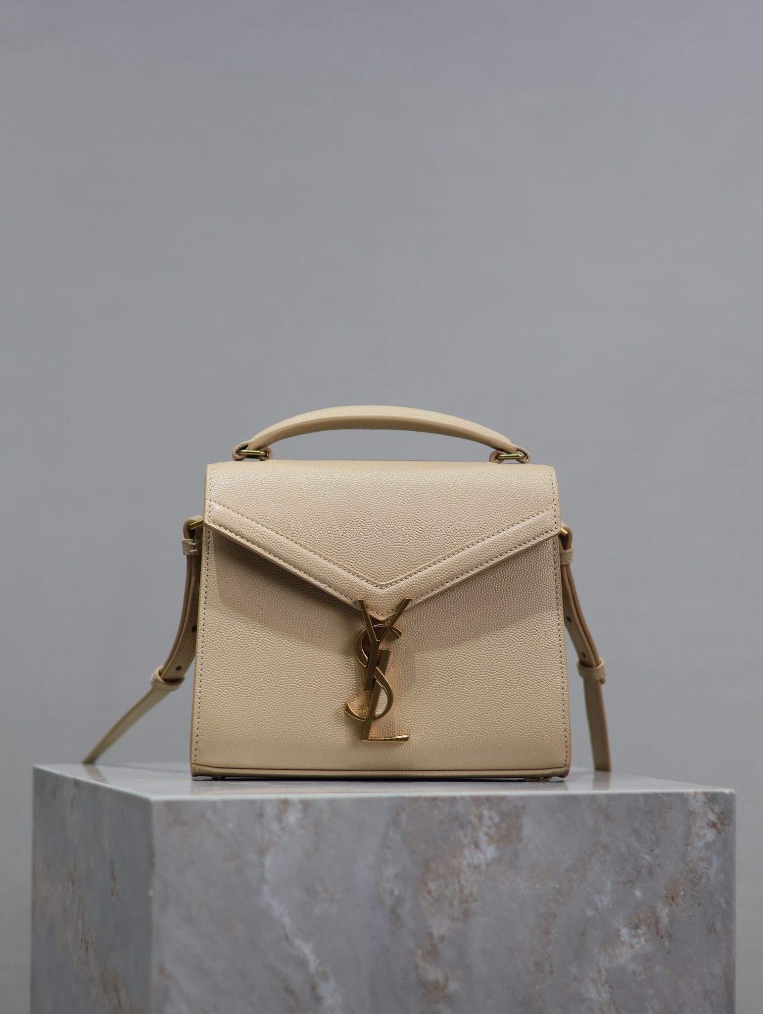 Front flap with magnetic snap closure and signature YSL signature covered in leather. Exterior: 1 rear flat pocket, Interior: 1 main compartment, 1 flat pocket, 1 pocket under the flap, leather lining.